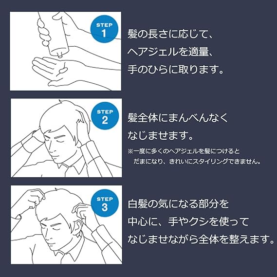 ●髪を染めずに白髪を目立たなくする。無香料 白髪用整髪ジェル。