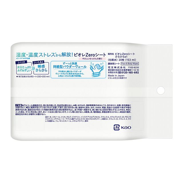 汗を乾かし続けるパウダーがヴェールのように肌を包み込むから、心地よいさらさら感が長持続。1枚で全身ふける大判シート(230×200mm)。やさしいせっけんの香り。*汗・ベタつきの不快感