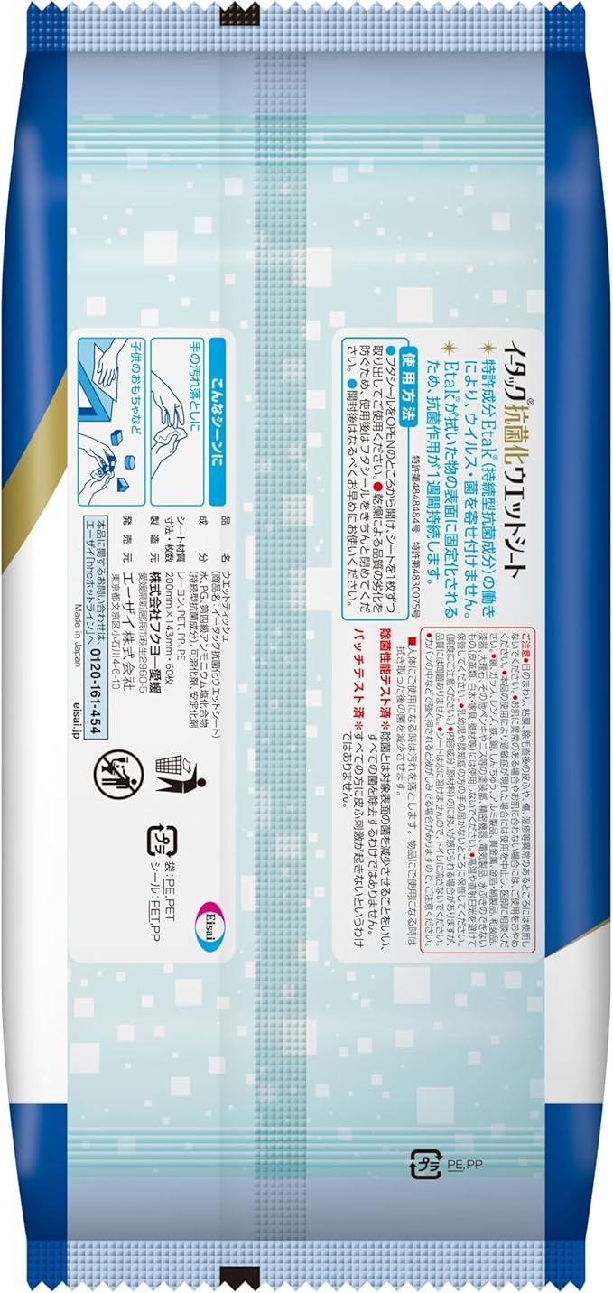 ・サッと一拭きで持続型抗菌成分(Etak)が固定化するので、身の回りの気になるものを除菌・抗菌するノンアルコールタイプのウエットシート。