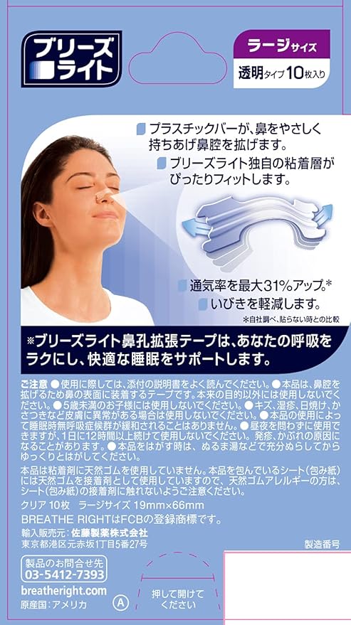 ●本品は、鼻腔を拡げるため鼻の表面に装着するテープです。本来の目的以外には使用しないでください。