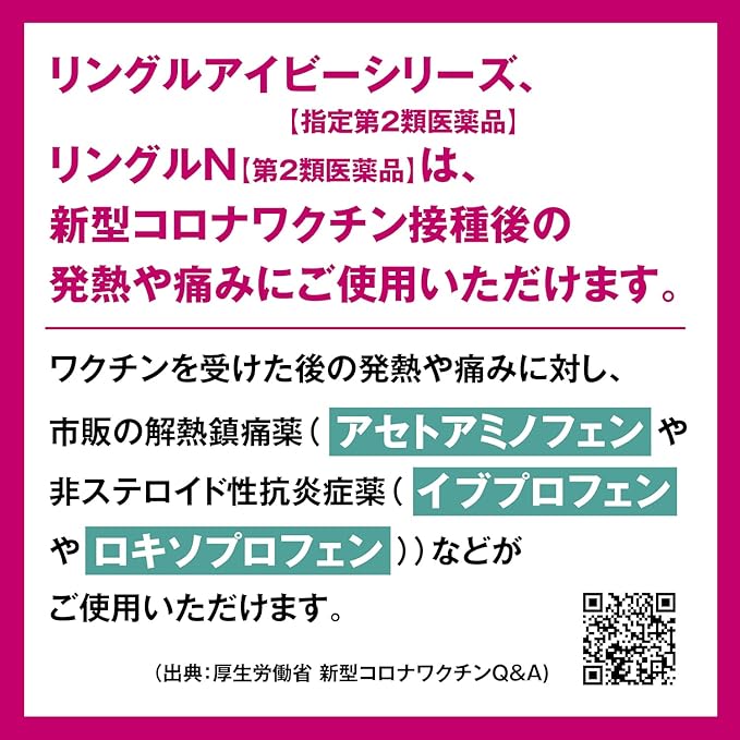 イブプロフェン・150mg( 頭痛、生理痛、歯痛等の鎮痛、発熱時の解熱に効果をあらわします。)