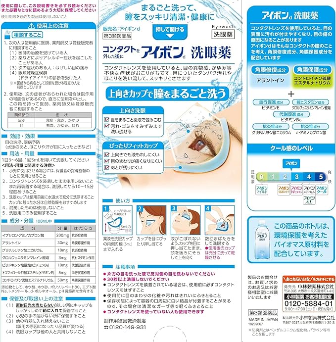 目の洗浄、眼病予防(水泳のあと、ほこりや汗が目に入ったときなど)