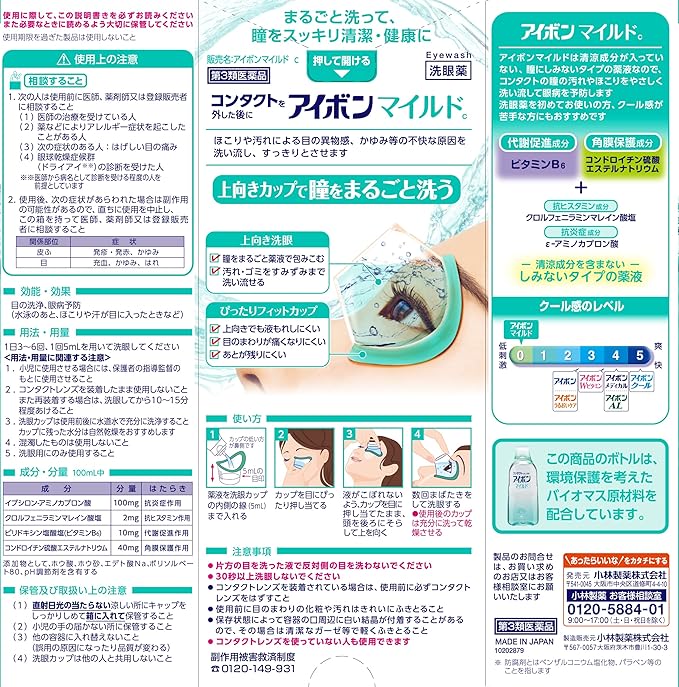 ●アイボンマイルドは清涼成分が入っていない、瞳にしみないタイプの薬液なので、コンタクトの瞳の汚れやほこりをやさしく洗い流して眼病を予防します