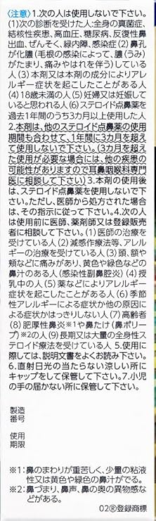 3.本剤の使用後は、ステロイド点鼻薬を使用しないで下さい。ただし、医師から処方された場合は、その指示に従って下さい。