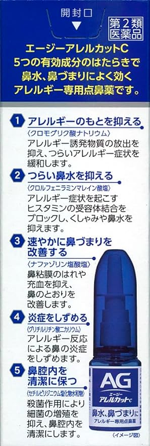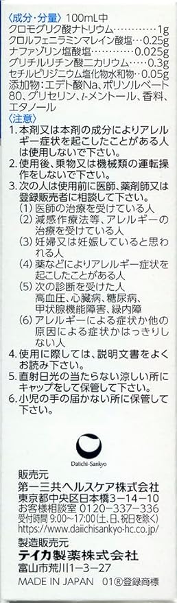 1.抗アレルギー剤「クロモグリク酸ナトリウム」が、アレルギー誘発物質の放出を抑え、つらいアレルギー症状を緩和します。
