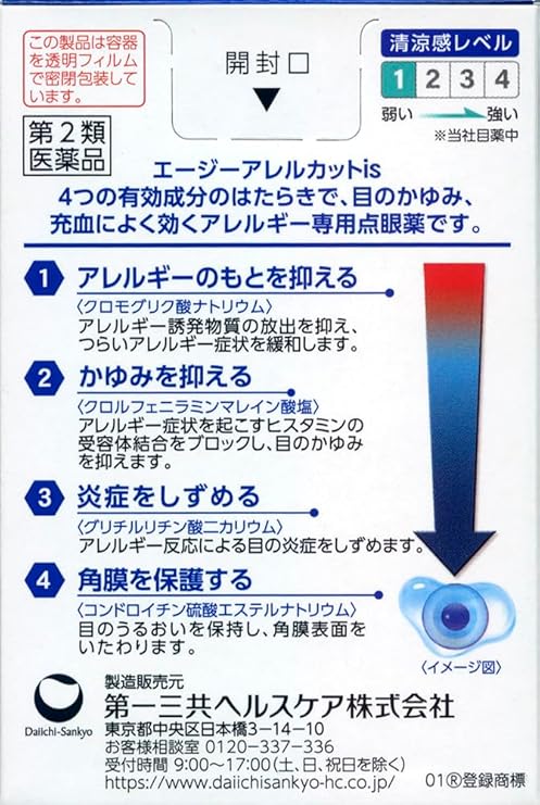 はたらき:アレルギー症状を起こすヒスタミンの受容体結合をブロックし、目のかゆみを抑えます。