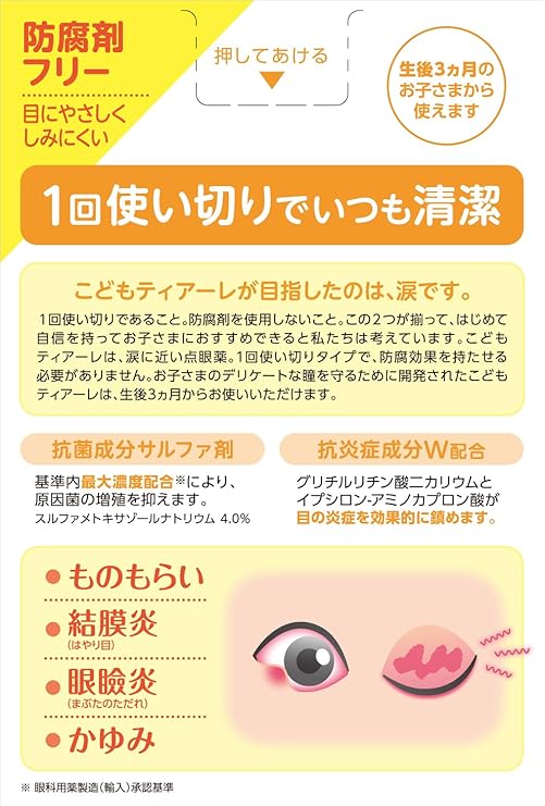 お子さまのデリケートな瞳を守るために開発されたこどもティアーレが、生後3ヵ月からお使いいただけます。