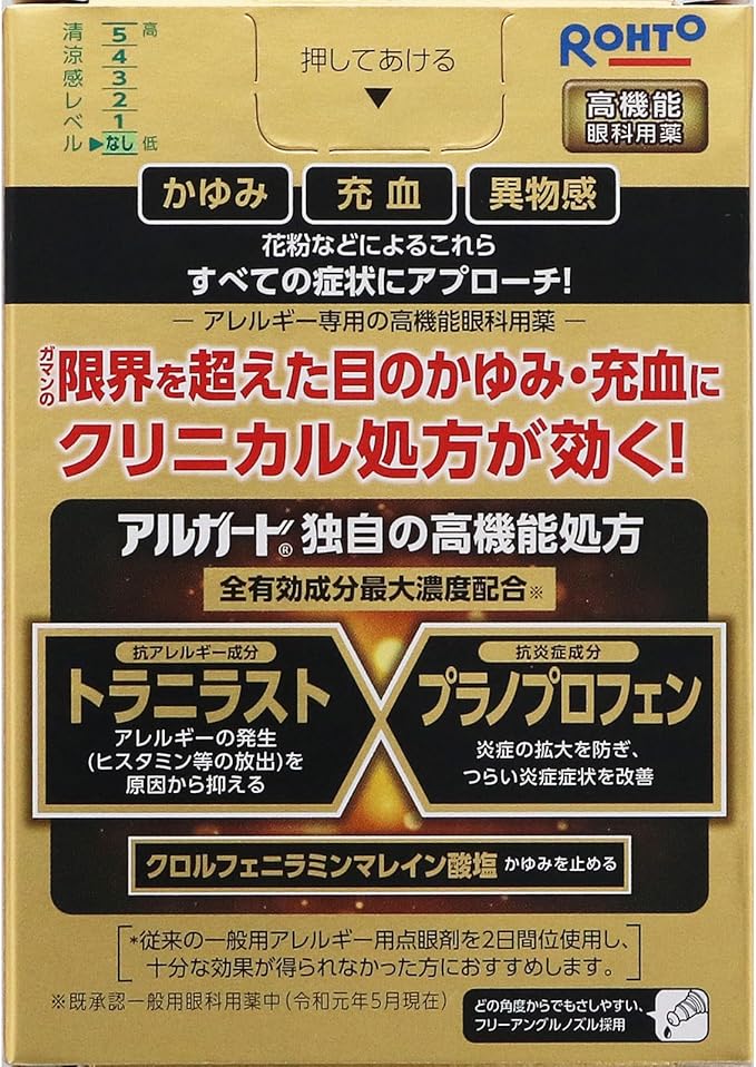 花粉、ハウスダスト(室内塵)などによる次のような目のアレルギー症状の緩和:目の充血、目のかゆみ、目のかすみ(目やにの多いときなど)、なみだ目、異物感(コロコロする感じ)