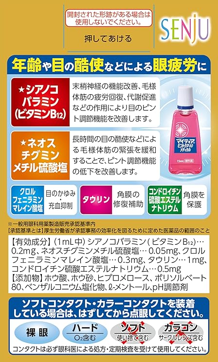 ●2つのピント調節機能改善成分シアノコバラミン(ビタミンB12)とネオスチグミンメチル硫酸塩を最大濃度※配合。