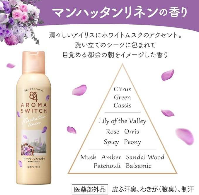 清々しいアイリスにホワイトムスクのアクセント。洗い立てのシーツに包まれて目覚める都会の朝をイメージした香り。