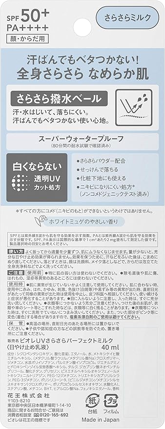 乾燥感なく強力紫外線カット。「さらさら撥水ベール」で、汗・水はじいて落ちにくく、全身さらさらなめらかな使い心地。