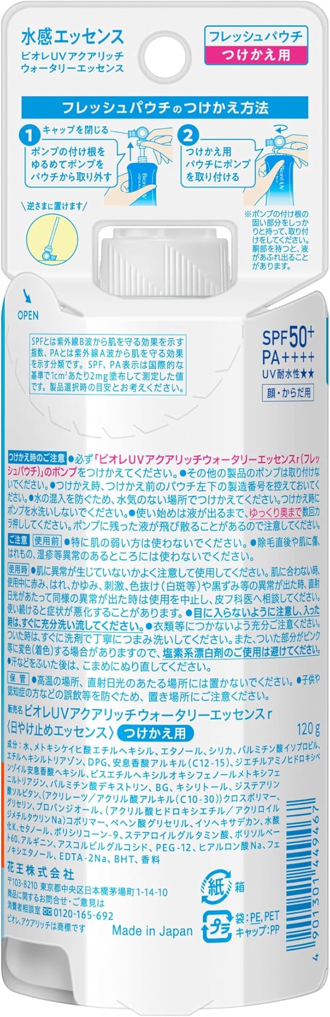 ●必ず「ビオレUVアクアリッチウォータリーエッセンスr(フレッシュパウチ)」のポンプをつけかえてください。