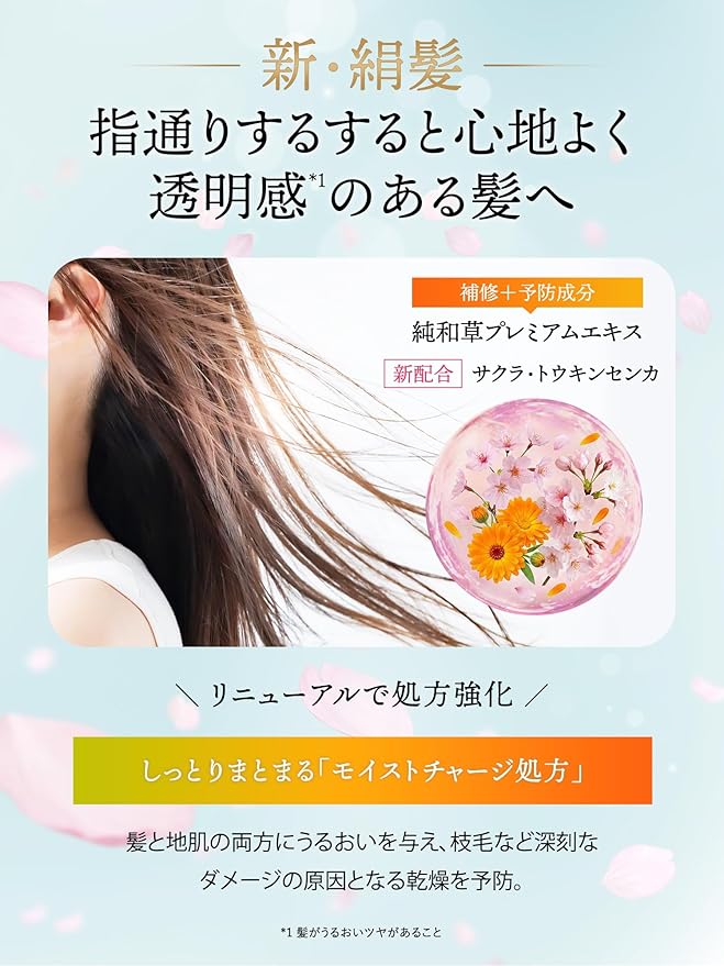 ●日本の髪研究から生まれた和草のちからでダメージ補修&予防する予防美髪ケアシリーズ。見ても、ふれても、感動する絹髪。
